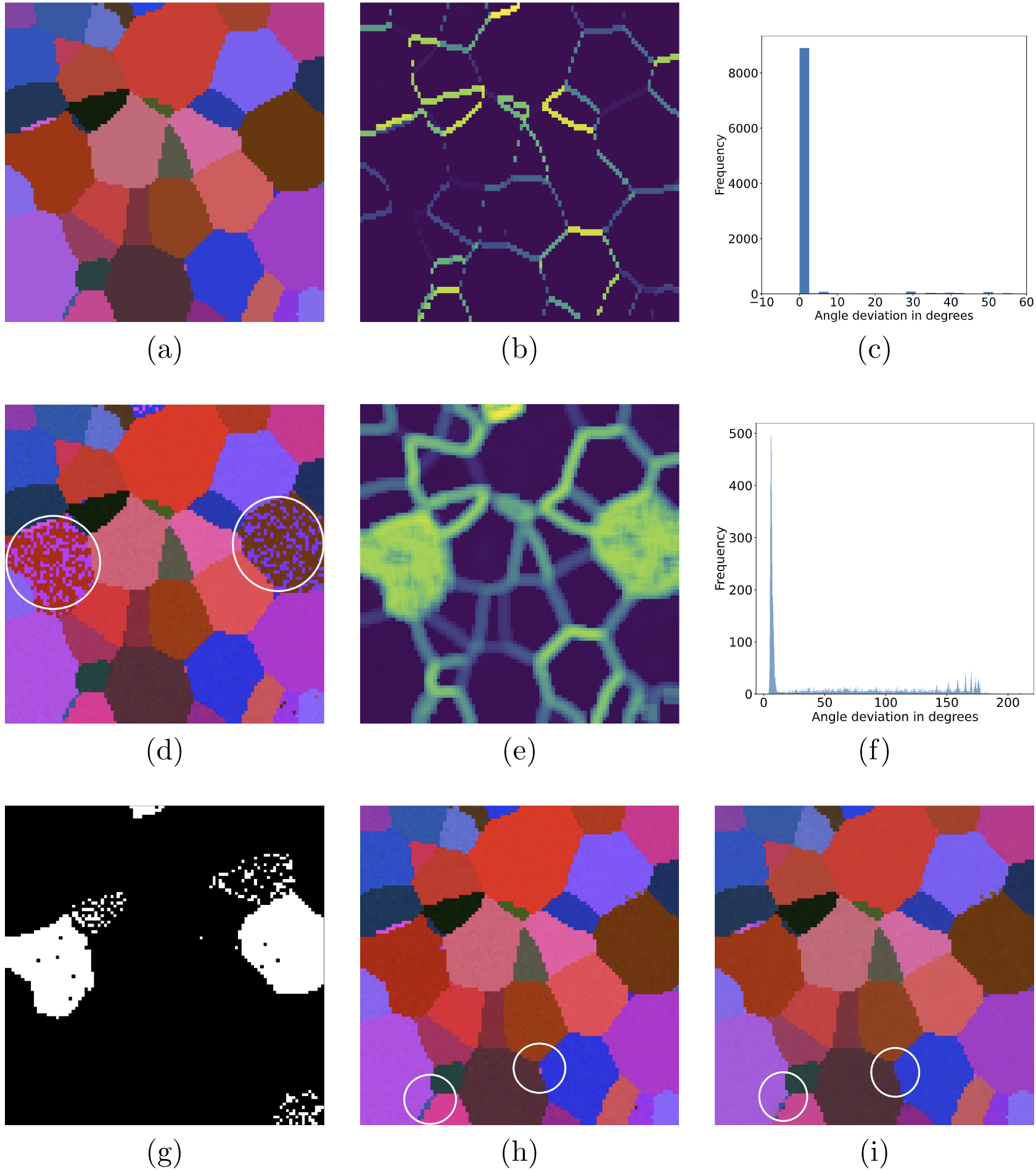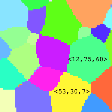 To study these properties, crystal orientations are often measured using Electron Backscatter Diffraction (EBSD), which provides Euler angles describing each grain’s orientation. However, EBSD measurements can suffer from noise, missing regions, or inaccuracies—sometimes within \(1^{\circ}\) of error
