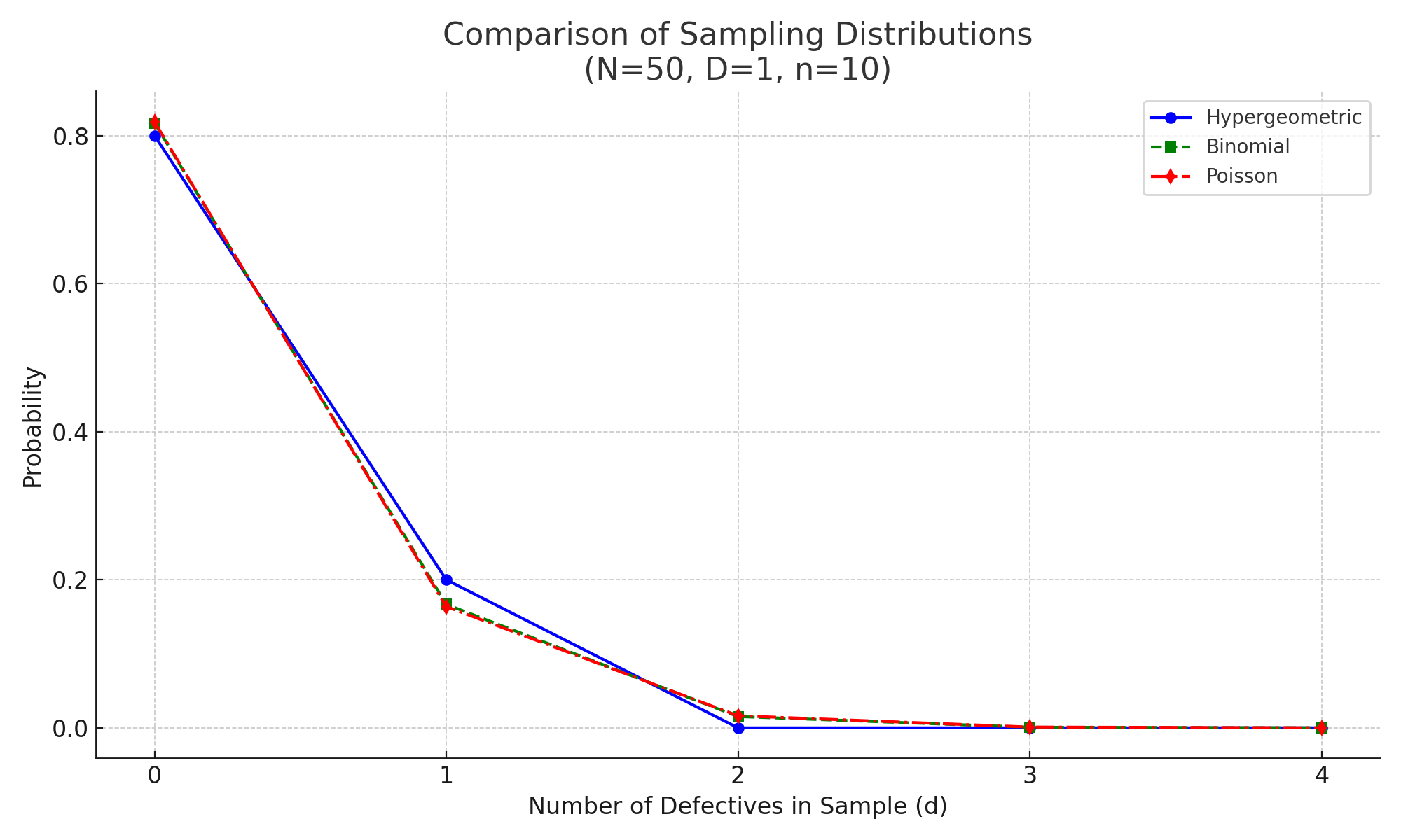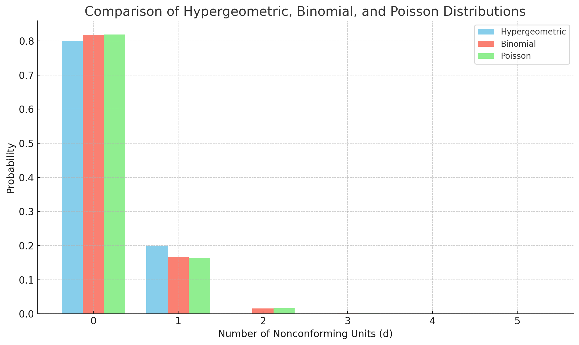 Comparing Hypergeometric, Binomial, and Poisson Distributions. Probability distribution of accepting a lot with for a number of nonconforming units detected