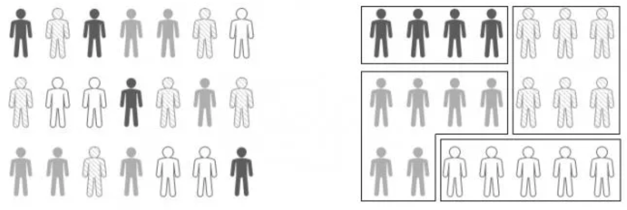 - It’s more practical to randomly choose a few neighborhoods and survey everyone in those neighborhoods.